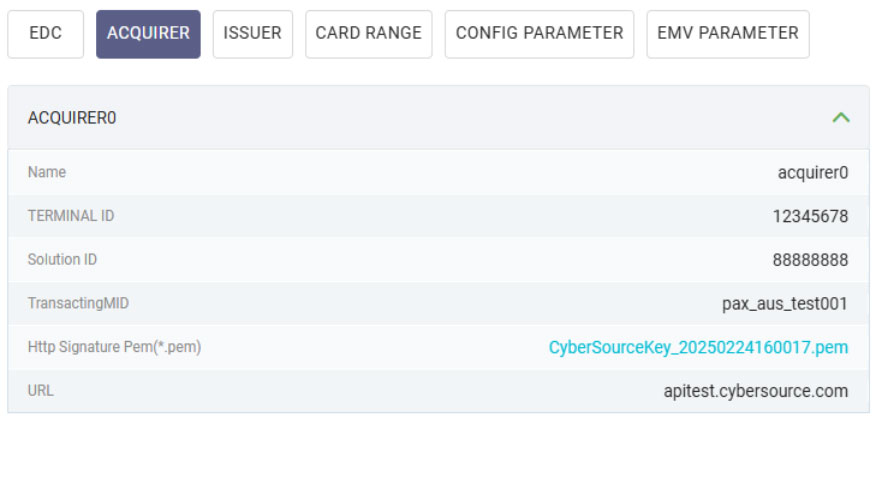 PAX Technology in collaboraton with VISA, developed a payment application connected with VISA Cybersource Gateway known now as Visa Acceptance Platform